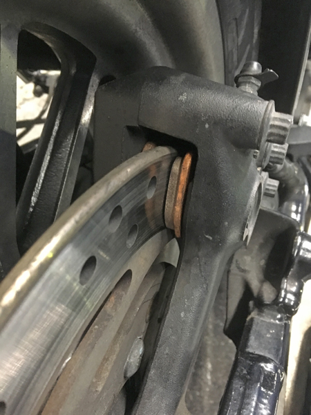 そして、リアのブレーキパッドも残り1mm程度で前から行きつけのバイク屋さんに早く交換してねーっと何度も言われてたので一緒に交換。