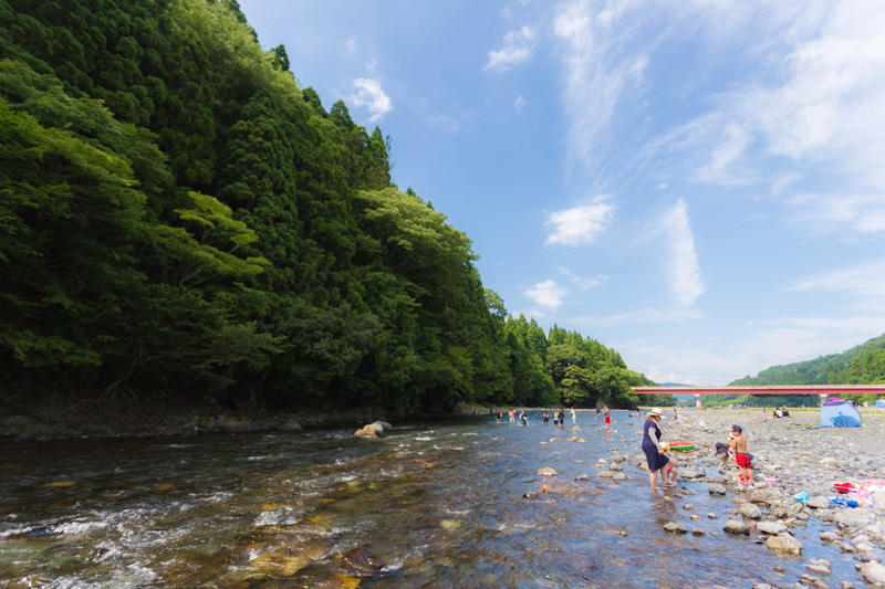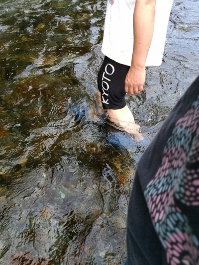 という事でキャンプ場横の安曇川で水遊びする事にします。