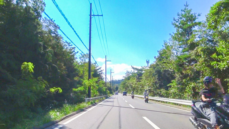 Kenだけオフロードなのでスイスイ走ってる後ろでO先輩もBanditで頑張ってるし、その後ろからもしーちゃんとよっこちゃんのURALもゆっくりではあるけど着いてきてます。
