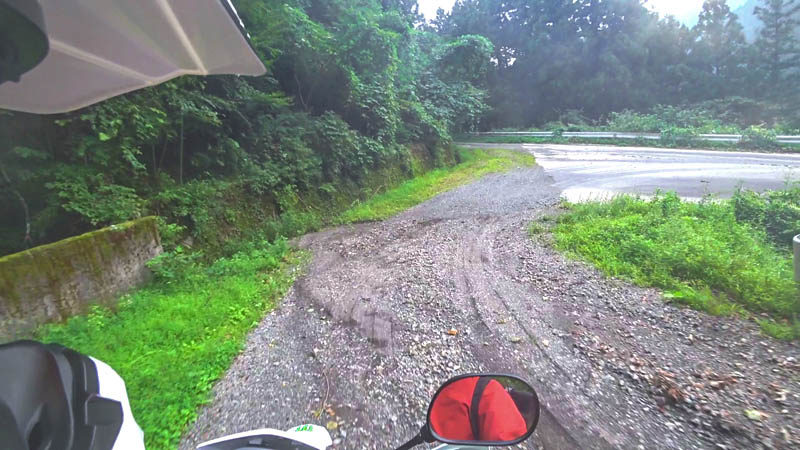 横にガードレールがあるので落ちたりという事はたぶん無いと思うけど、道の状況が非常にわかりづらいのでゆっくり走ります。