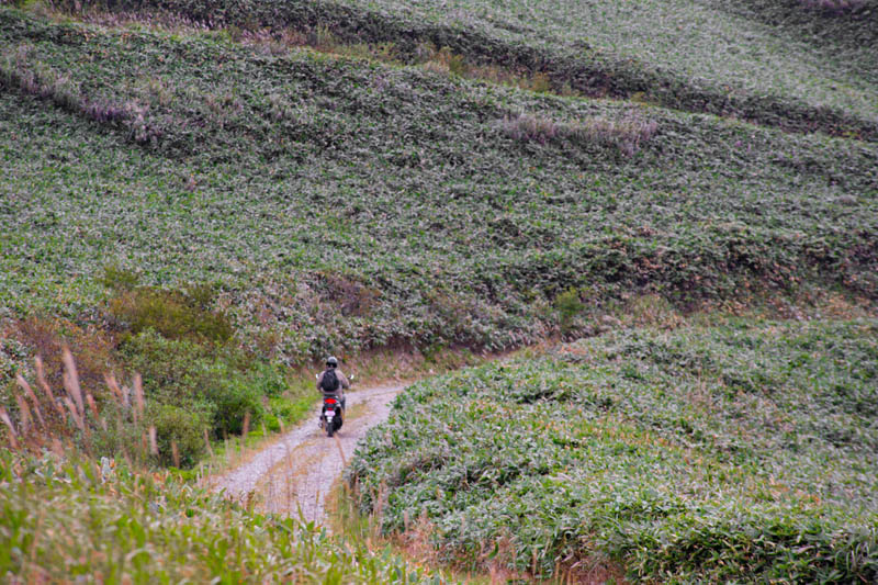 その先も崩れた石や岩などがゴロゴロしててバイクでは到底進めない状況。