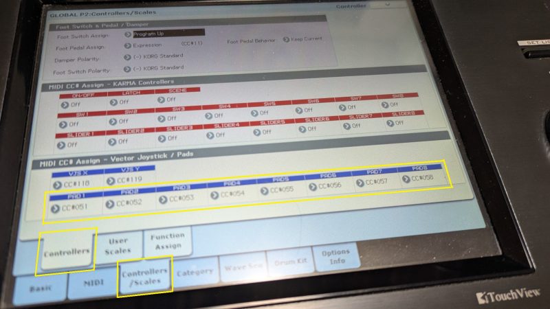 これで「KRONOS」のPAD機能を「MK3」のPADに割り当てができた…はず。