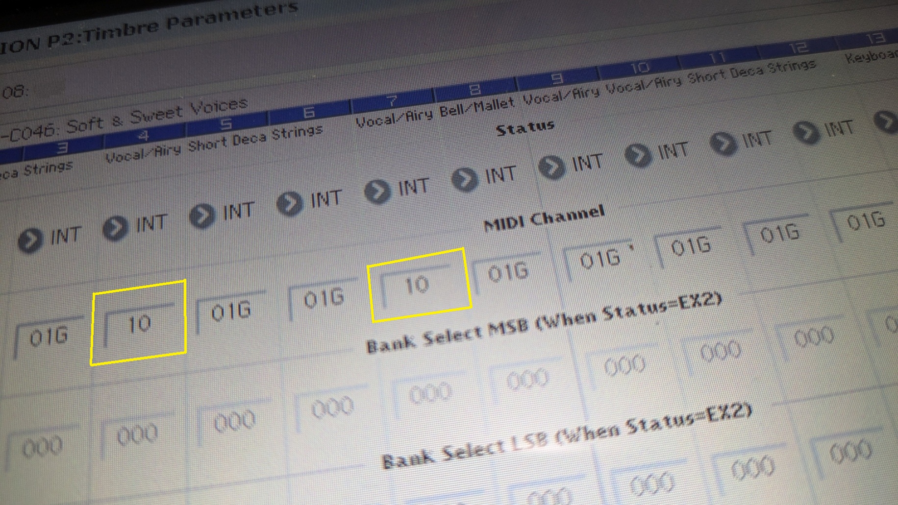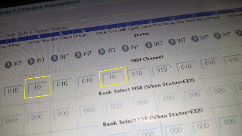 - 「Combi」モードで「Timbre Parameter」より「MIDI」を開き、「MIDI Channnel」にエディターの「PAD MIDI CHANNEL」で設定した数字に変更して保存。