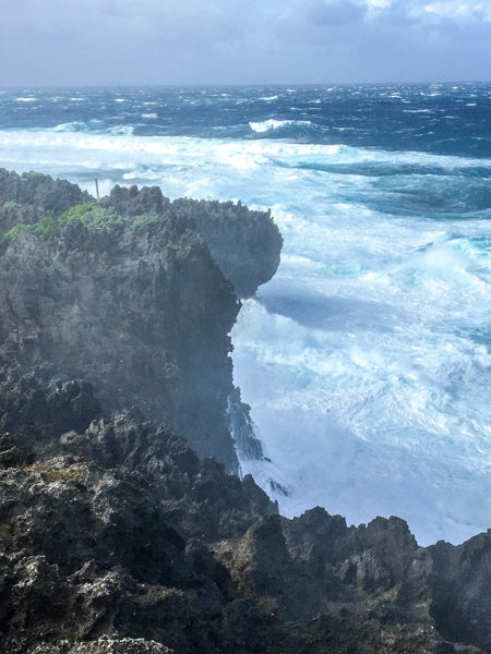 断崖絶壁に建てられた石碑よりもはるか数メートル高い位置まで波しぶきがあがってきたのは物凄くびっくりした。